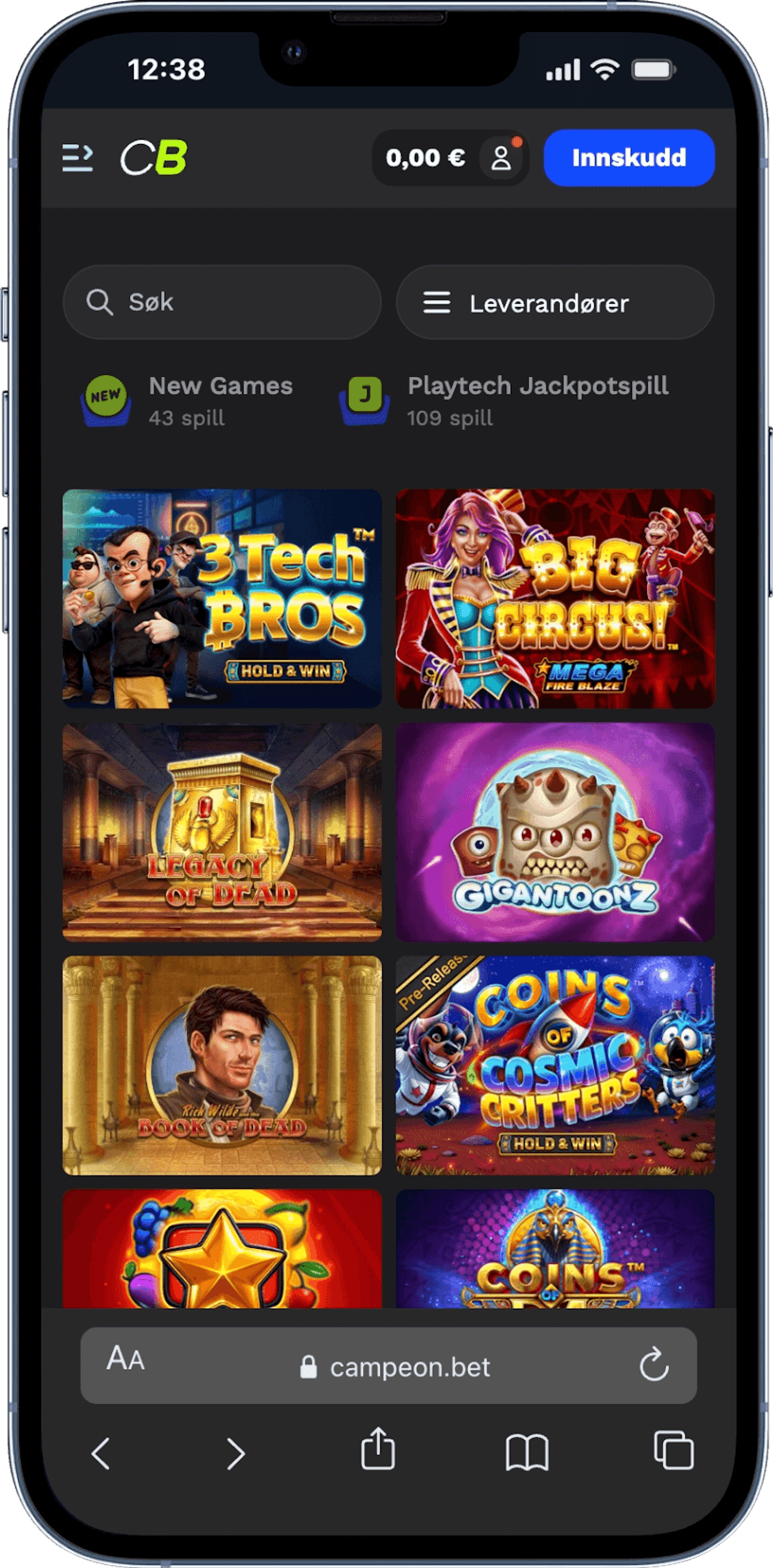 Ja, norske spillere kan registrere seg og spille hos Campeon.bet. Plattformen er tilgjengelig på norsk, men støtter ikke norsk valuta. Spill skjer derfor i euro eller annen valgt valuta.
